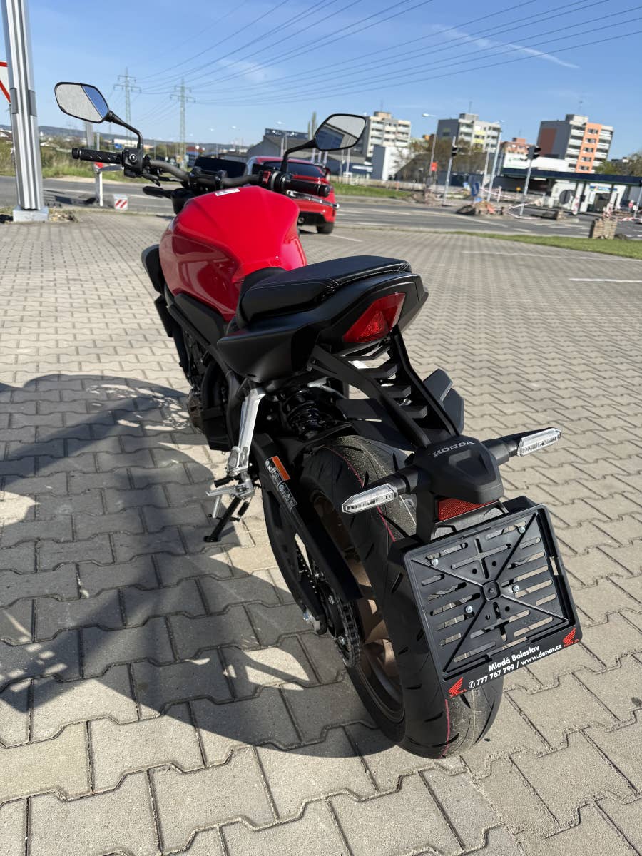 Všechno máte v pravé ruce. Řadový čtyřválcový motor s rozvodem DOHC dosahuje maximálního výkonu 70 kW (94 k) až do vysokých 12 000 ot/min a točivého momentu 63 Nm. Pro držitele řidičského průkazu skupiny A2 je k dispozici přestavba na výkon 35 kW (provádí ji prodejce Honda), která je po získání řidičského průkazu skupiny A připravena pro plný výkon ZDARMA. Protože výkon potřebuje kontrolu, brání antihoppingová pomocná kluzná spojka zablokování zadního kola při prudkém brzdění a podřazování. A aby byla viditelnost na silnici na vyšší úrovni, aktivuje systém nouzového zastavení (ESS) při prudkém zastavení zadní výstražná světla.
